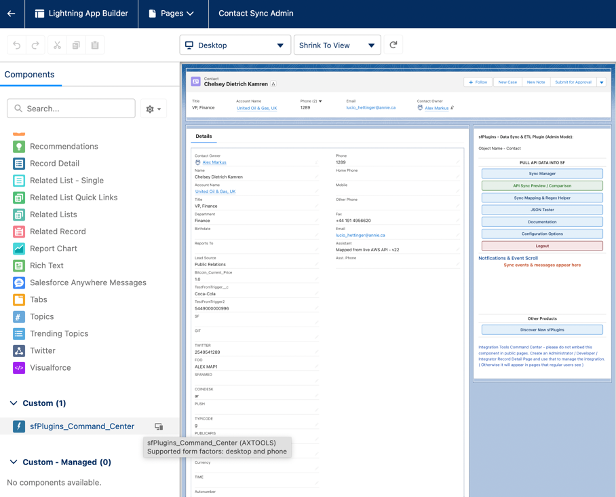 • Drag the sfPlugins_Command_Center aura widget into the very top right (or wherever you want it) and click Save